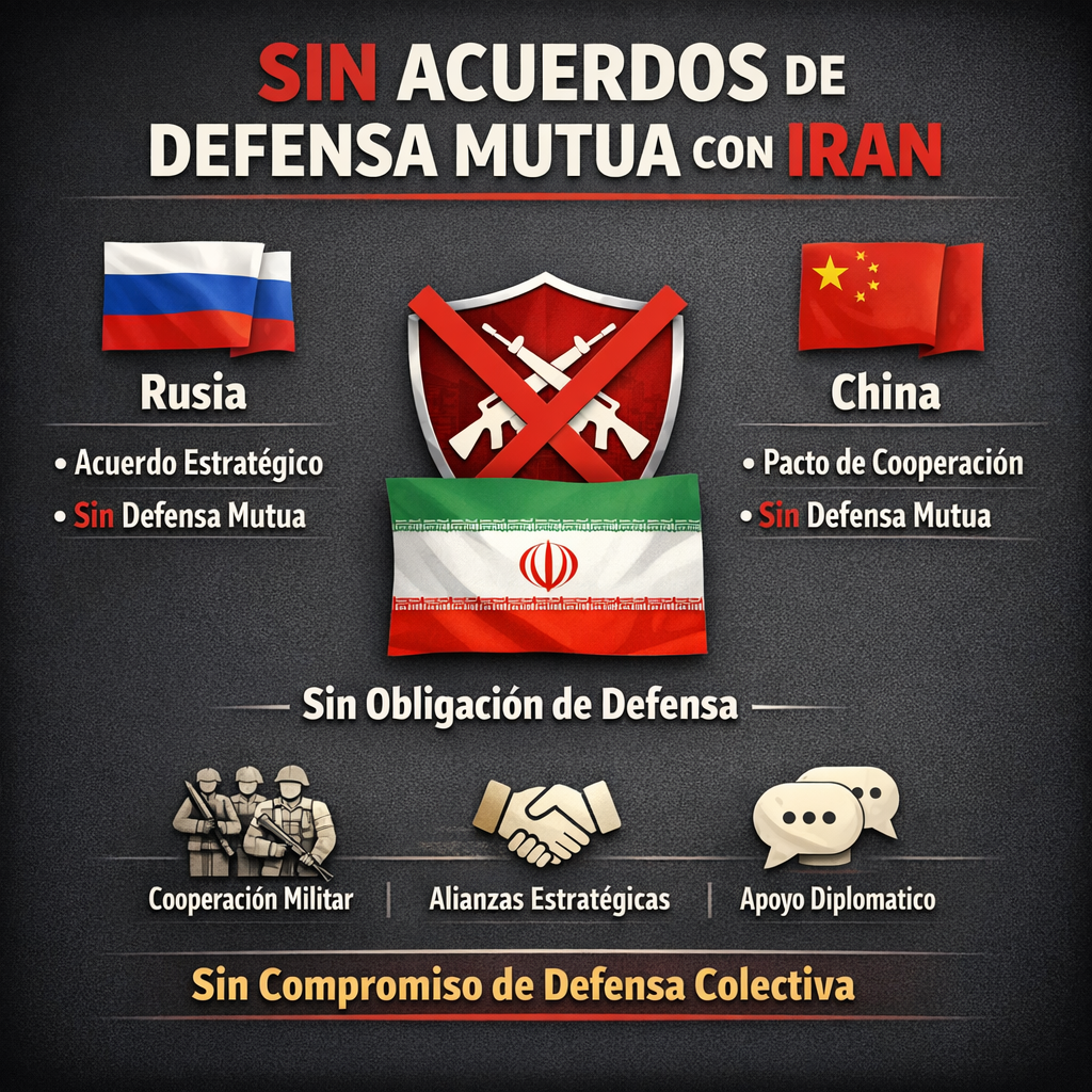 Aunque existen acuerdos estratégicos y cooperación militar, ni Moscú ni Pekín están obligados a defender a Irán en caso de conflicto